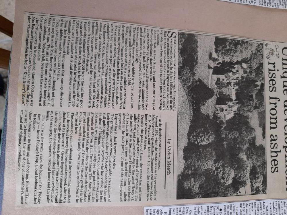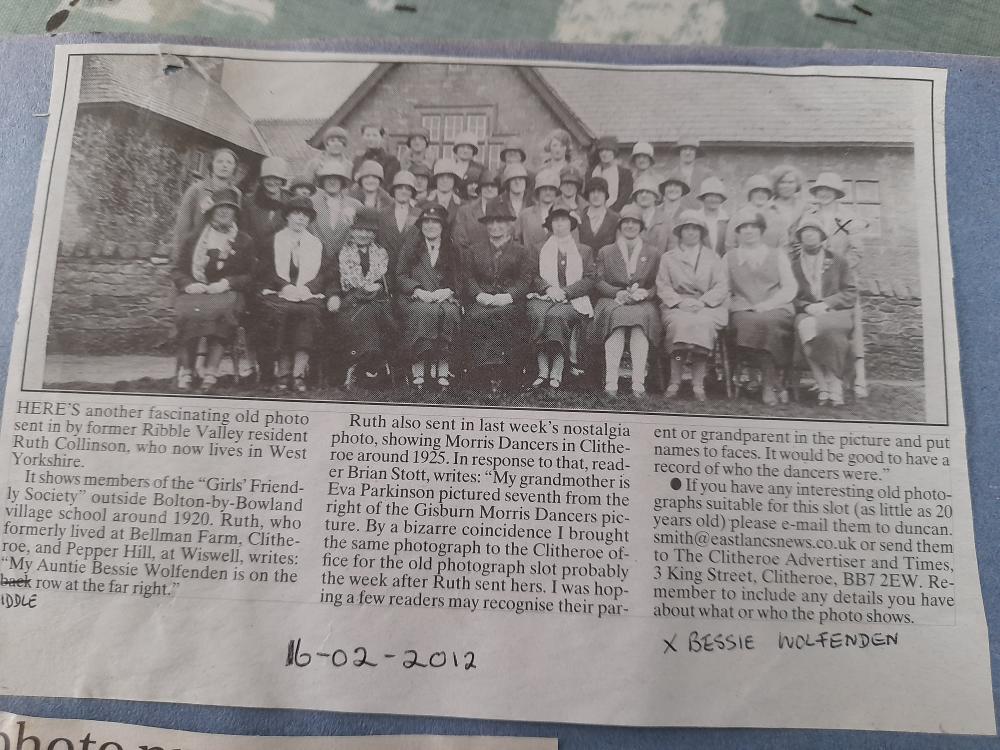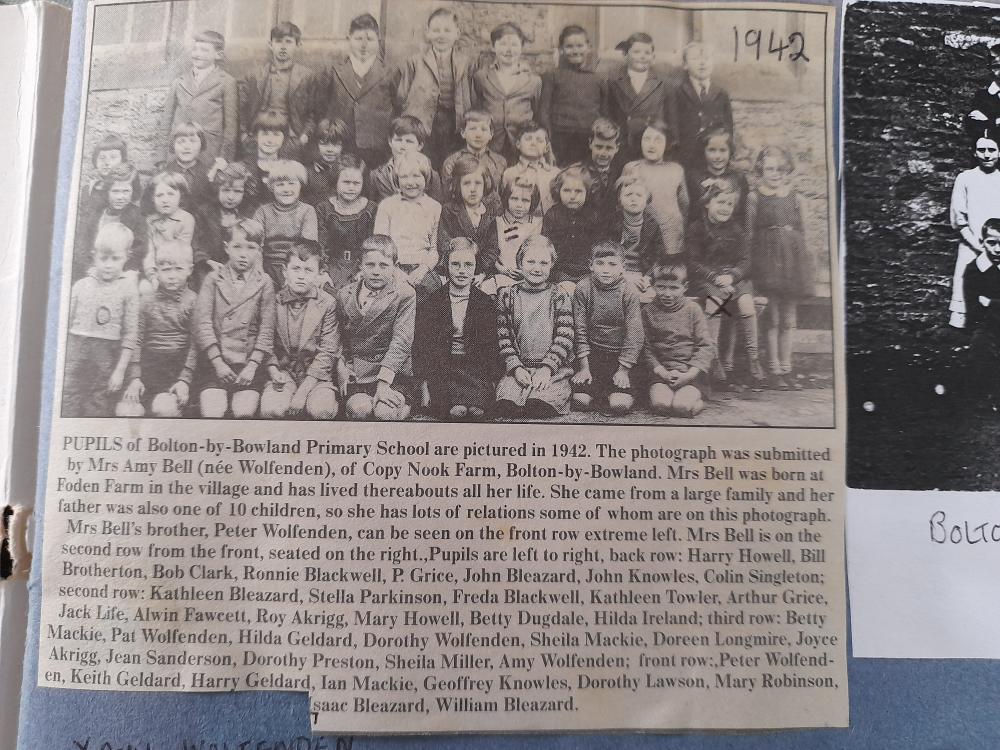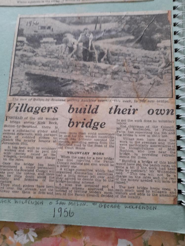 Most of the pictures, as well as newspaper cuttings shown have been supplied by a former Bolton by Bowland resident, who was born Ruth Wolfenden, married Jos Collinson and lived in Bolton by Bowland at Fooden Farm, then Bolton Mill. They moved to Bellman Farm at Clitheroe, then when the quarry forced a move, to Pepperhill at Wiswell where sadly Jos died.